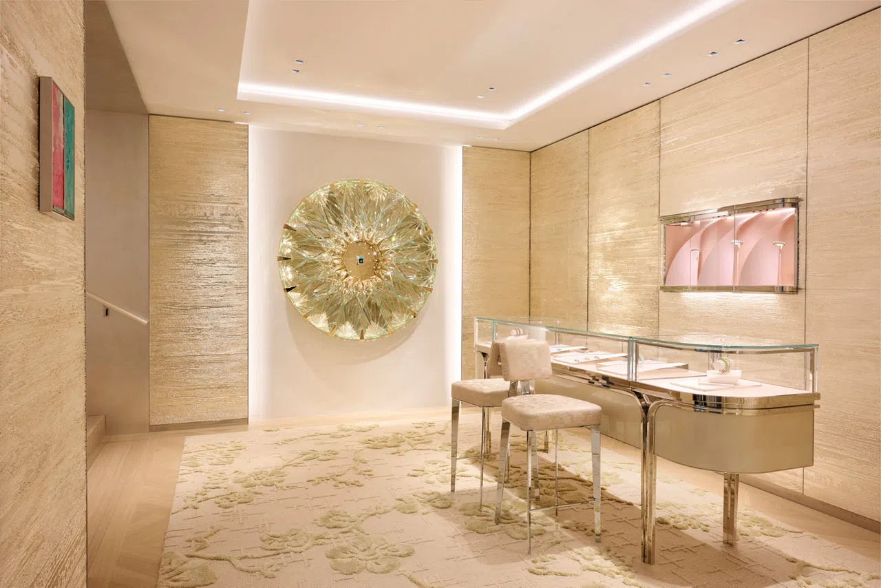 Сърцето на бутика съчетава изящен прозорец на покрива и стълбище, изцяло изработено от стъкло, създадено от Питър Марино и проектирано от Хю Дътън. Двамата създават скулптура от светлина и прозрачност, която напомня блясъка на диамантите.