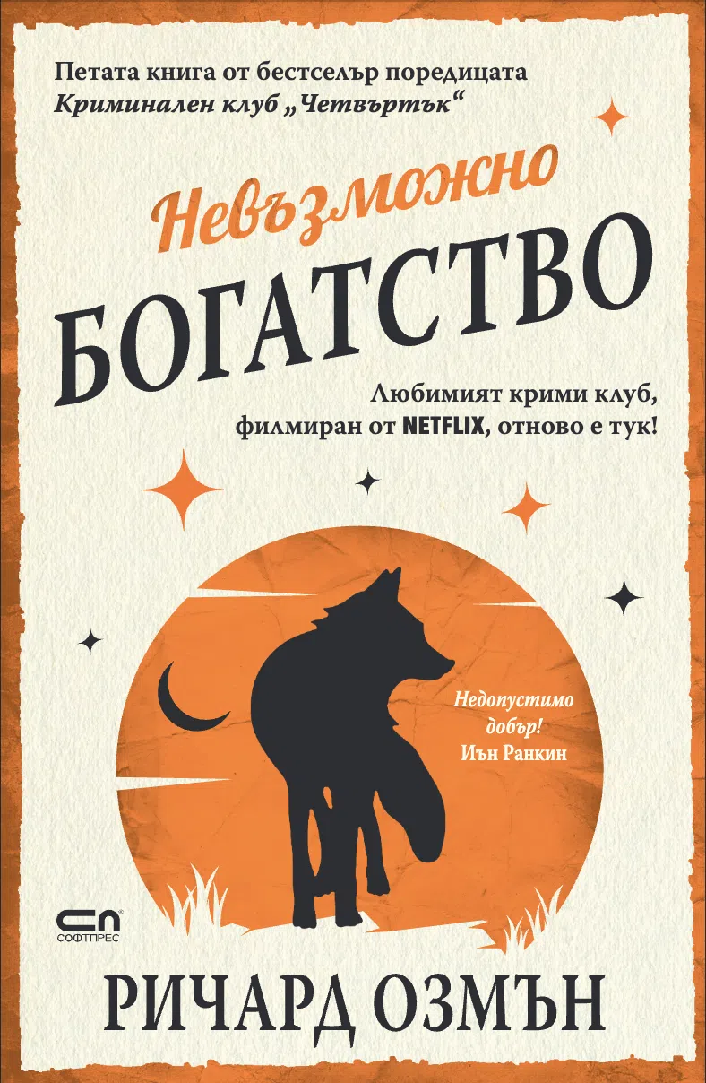 „Невъзможно богатство“ е петата част от хитовата поредица на Ричард Озмън. В нея сватбен гост на име Ник моли Елизабет за помощ и тя открива, че старата й любов – разследването на криминални загадки, не е хванала ръжда. За нещастие обаче, скоро след това Ник изчезва. Приятелите усещат, че е ударил час клуб „Четвъртък“ да се заеме с ново предизвикателство.