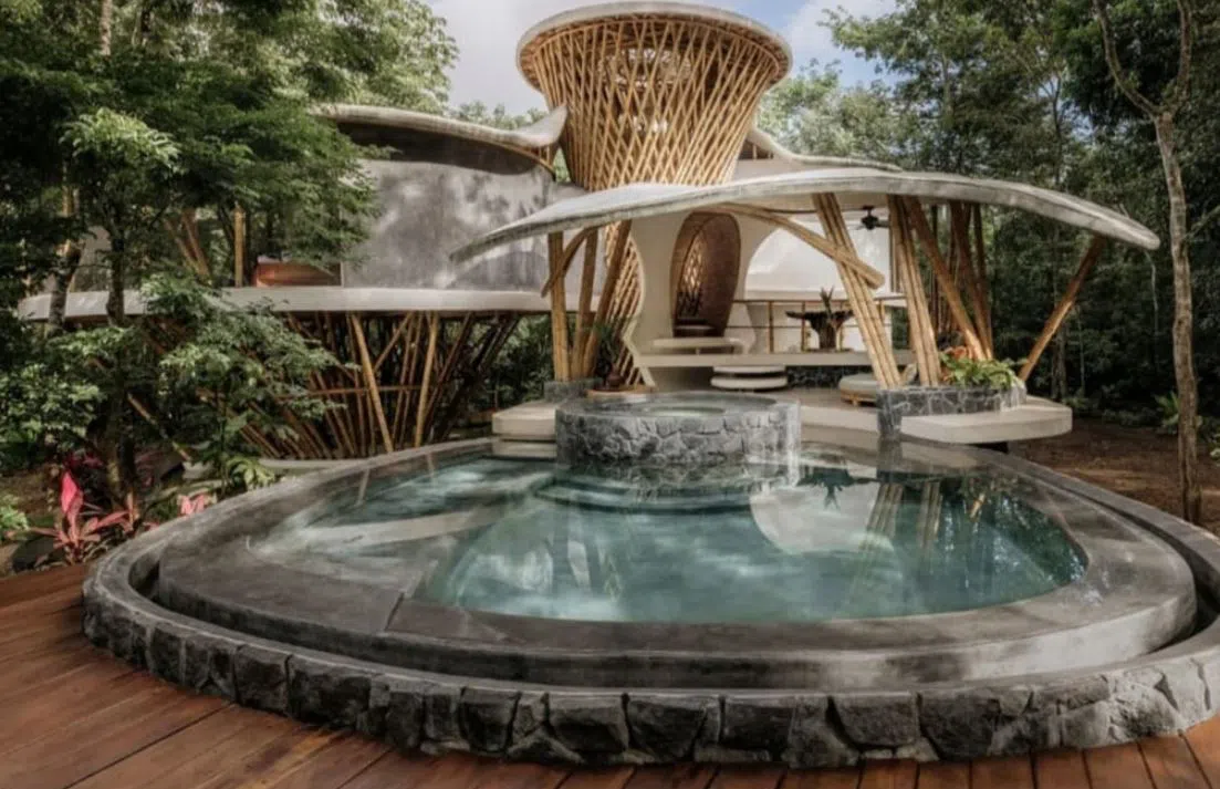 Животът в къщичка на дърво не изключва лукса. Тази, например, разполага с басейн и джакузи. Къщата изглежда сякаш е израснала естествено, а не е построена, отбелязва Сийбек. Използвани са местни естествени материали като вулканичен камък и смолата на маите „чукум“ за мазилка.