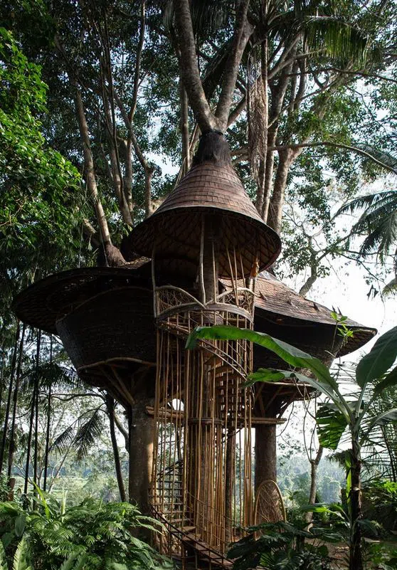 Разположена в тропическа гора в Убуд, Бали, тази къщичка се отличава с отворената си конструкция. Стените и подът ѝ са почти изцяло от бамбук. Конструкцията ѝ е с формата на кошница и почти се слива със заобикалящата среда.