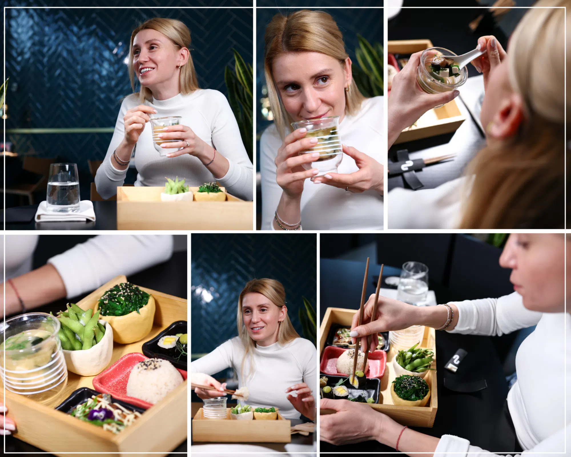 „Ето това харесвам в японската кухня – много зеленчуци, чист протеин, премерени порции. Баланс, без крайности“, коментира Ива. Шегува се, че ако майка ѝ сега види масата ни, ще каже „Леле, за кого по напред?!“ и добавя: