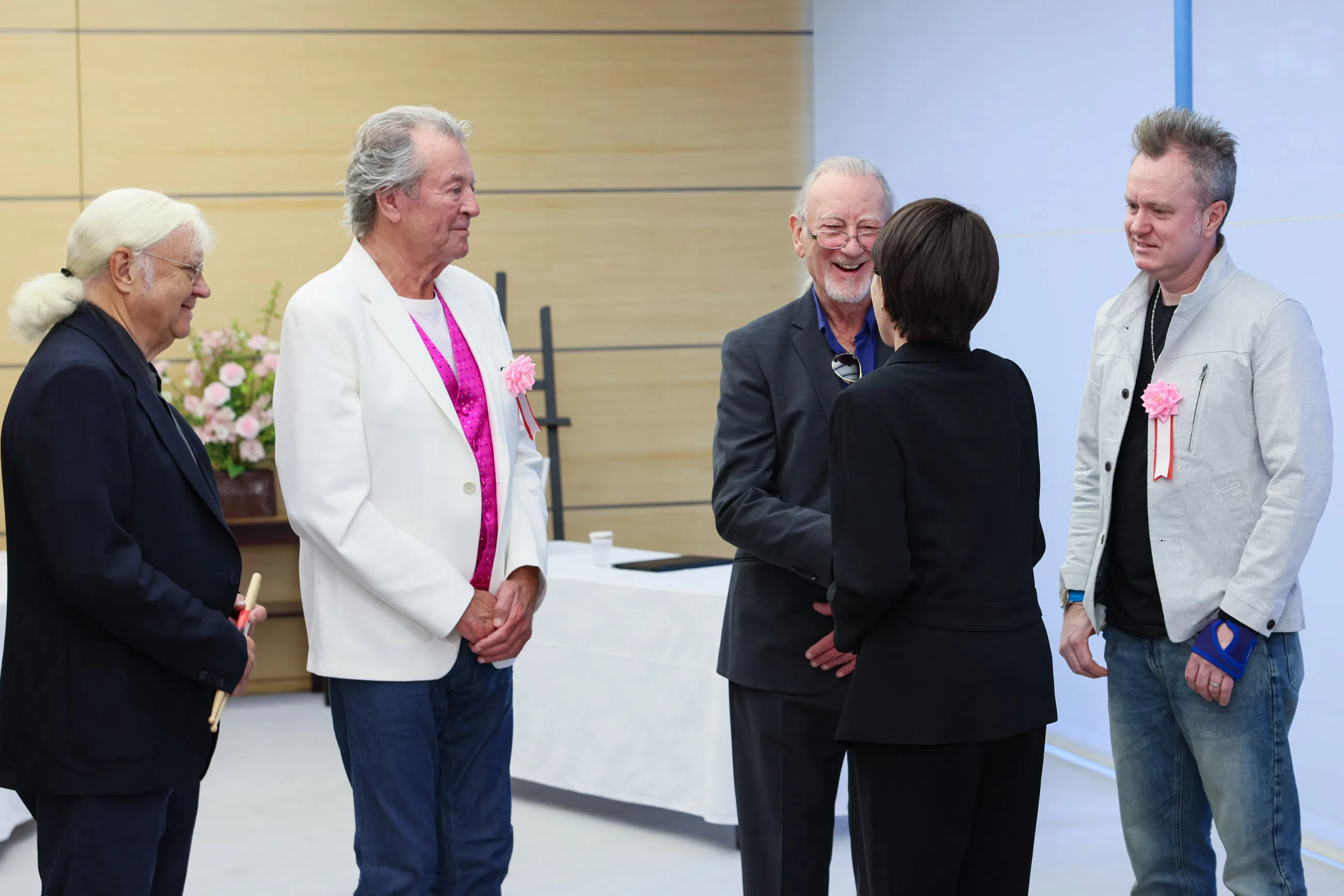 „Изразявам най-дълбокото си уважение към вас за това, че сте оставили следа в историята на рока, продължавате да поемате предизвикателства и създавате още по-впечатляваща музика днес“, заяви Такаичи, като им пожела успешно турне, което започва в събота в Токио.